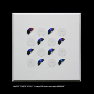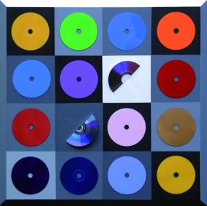 La ricostruzione figurativa ha in se tendenze verso il geometrico ed è evidente , i compact disc sono centri,dove invece di circoscrivere le finalità della ricerca pittorica si incastrano oggetti attinenti che porteranno alla contaminazione tridimensionale che non è da confondere con l’indole di un tecnologo,perché la ricerca di Alfredo Pieramati è da contestualizzare nelle aspirazioni e nelle visioni di un artista che in percorsi asimmetrici si interroga sulle dinamiche delle alterazioni materiche .