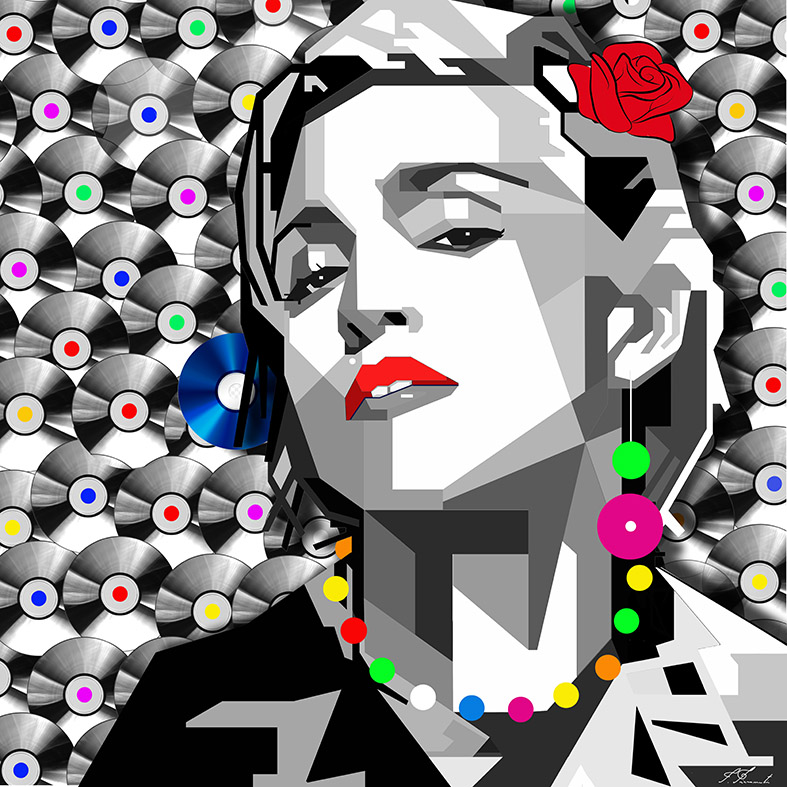 “MADONNA” Olio su plexsigas 80×80 con CD FLUORESCENTE