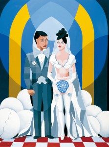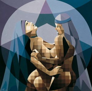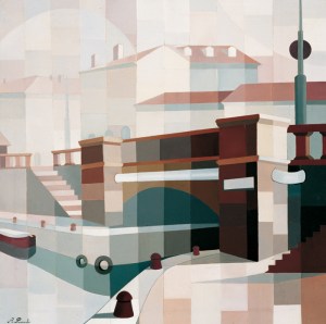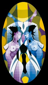 (elettronici, digitali, automatici, robotizzati, etc.) che molti di noi, che siano adulti guardiamo o con senso acritico tollerante o con una curiosa apprensione che forse è vicina alla paura. Questi curiosi comportamenti dell’ uomo esistenziale non sono tuttavia ideologici ma semmai vengono forniti dalla continua crescita d’una società tecnologica, dove tutto sembrerebbe funzionare tranne l’uomo, in quanto ridotto da soggetti a oggetto della mercificazione consumista.Questo stato di fatto è sempre più dominato dalla presenza dei “computers” che analizzano, quantificano, decifrano, codificano, innestandosi nei circuiti vitali della produzione delle idee che creano un ordinamento nuovo e che ci fanno capire che il mondo , così come lo percepiamo, è ormai un oggetto non più fondato su delle leggi naturali ma, al contrario, su d’una contrastata libertà che è fondata sull’arbitrio imposto dal clima produttivo e che, da una parte, ripaga il profitto immediato, dall’altra, alimenta le passività burocratiche. Da tempo viene anche sostenuto, dalla classe dirigente, che una sempre maggiore interdipendenza si va manifestando tra il mondo della comunicazione e quello della cultura, senza tuttavia precisare quale genere di cultura in effetti viene propagandata dai “media” , che come è noto sono già gli strumenti eccellenti dei “managers” e che impongono la liceità quasi esclusiva delle loro scelte, vincolate dall’economia di mercati e dal “business”.A nostro avviso la “ cultura” è sempre un insieme di discipline dove l’economia (che è una disciplina) ha una sua parte consistente ma non costituisce la summa, cioè il tutto. Sia perciò ben chiaro che il “business” non è mai stato la sede appropriata della cultura , in quanto la vera cultura vive esclusivamentesull’integrità dell’identità dell’uomo e favorisce la creatività pura. Dunque il rispetto della integrità dell’uomo e della libera creatività costituiscono un punto obbligato della cultura che deve farci riflettere.Se nel passato l’arte è sempre stata in agguato sui problemi di natura, indagandone le strutture formali e ambientali è pronta a intuirne i più gelosi segreti, poiché veniva guardata con occhio platonico della mente, nel nostro presente è indubbio che è avvenuta una contrazione rivoluzionaria che ci stimola a penetrare nell’ordine costituito della finzione artificiale, della quale ci serviamo e della quale siamo costantemente serviti, costringendoci a compiere un atto di conoscenza e almeno di volontà , per renderci coscienti del dominio irrazionale della in naturalità – artificiale, che ormai ci domina in maniera irreversibile, malgrado le false giustificazione e le apparenze razionali. Alfredo Pieramati che è un pittore umbro, vissuto a Milano da sempre, perché trasferito in questa città che aveva un solo mese di vita, con l’intelligenza delle sue scelte molto oculate, ha giustamente avvertito questo processo sociologico di reificazione dell’uomo contemporaneo che appare come imprigionato da schemi matematici animati dall’elettronica. In queste direzioni, senza assumere toni- contestativi, si è reso portavoce di una ricerca che unica nel suo genere d’espressione, da lui stesso definita “Il computerismo” e che corrisponde a un genere d’immagini di pittura che in lui vengono ispirate dall’effetto grafico dei “ frattali”, le quali vengono generate sui video-terminali dei computers, derivate dalla geometria frattale, così definite nel 1981, dal matematica americano Mandelbrot.In questo senso l’arte della pittura di Pieramati si evolve e compie una lenta maturazione del suo linguaggio formale: “in un certo senso è – come dice il pittore – lo spirito dell’uomo d’oggi che si manifesta con la tecnica del tempo”.I “frattali” sono la risultante figurativa dei calcoli matematici, elaborati dai computers, che a loro volta ne determinano le qualità visuali e estetiche cioè: la forma, il colore, le misure di grandezza( che sul terminale, possono essere impiccolite o ingrandite a volontà dall’ operatore, sino a costituire le immagini delle strutture di forme virtuali desunte dai calcoli matematici e rappresentare sul video in maniera visibile.A questo proposito si osservi la copertina di questo stesso catalogo che rappresenta l’immagine colorata di due “frattali dissimulati!” cioè interamente inventati e rappresentati da Pieramati per mimesi figurale.In realtà queste due immagini pittoriche riprodotte , corrispondono a degli impulsi di sensazioni esclusivamente emotive dell’artista, ispirate a degli effetti dei computers e anche se Pieramati non conosce e non usa lui stesso alcun computer, gli viene tuttavia spontaneo a questo pittore di creare o ri/creare queste forme geometriche similari ad alcuni frattali. In questo modo Pieramati interpreta d’artista l’esistenza del fenomeno d’una struttura virtuale e visuale che ha sostituito la naturalità, cioè la cosiddetta realtà delle cose, almeno così come la percepiamo con i nostri sensi.Evidentemente le sembianze possibile dei “frattali” (simulati o no) possono essere infinite e variatissime, così come è infinito il calcolo matematico , sviluppatosi quindi sui terminali in direzioni visuali-virtuali astratte, oppure in arabeschi fantastici e coloratissimi , oppure ancora in forme geometriche d’ogni genere , così come possono mimare le prospettive delle cose visuali o le ricostruzioni desunte dalle realtà naturali , come alberi, animali, edifici, montagne, etc.E’ perciò ovvio che per questo insieme di qualità eidetiche e virtuali, le immagini dei “frattali” si collocano ormai all’interno del dibattito artistico contemporaneo con un insieme di proposte che possono riguardare nuove espressioni di comunicazione e lettura, determinate dall’interazione d’un mezzo che si trova ai confini tra arte e scienza, tra realtà e simulazione. A 